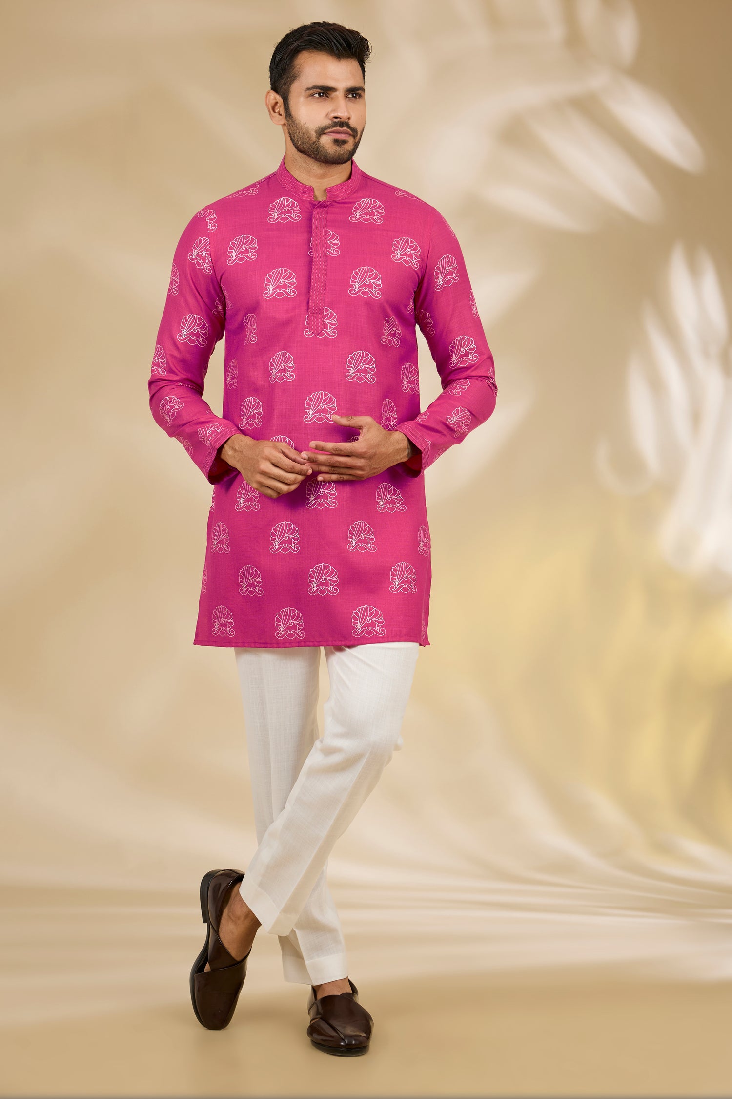 Black Asymmetric Printed Nehru Jacket Set